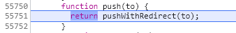 这里重点分析 push 方法跳转路由,按下 F11 进入 push 方法