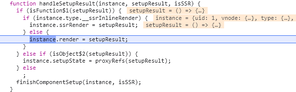 执行子节点的 setup 方法,setupResult 就是 RouterView 组件的 setup 方法的返回值