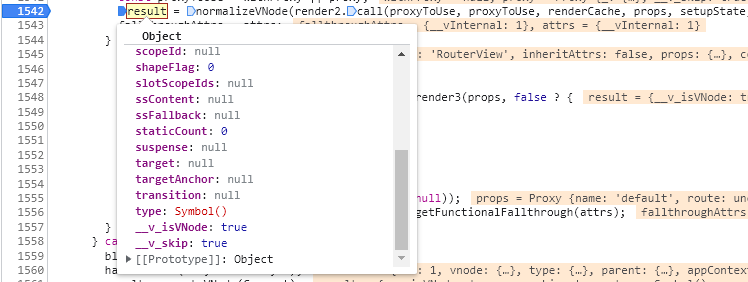 返回值 result 是空节点类型的 vnode,因为 router-view 组件中没有子节点