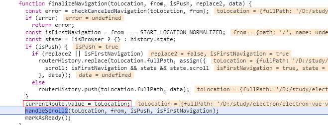 这里将传入的 toLocation 赋值给 currentRoute.value
