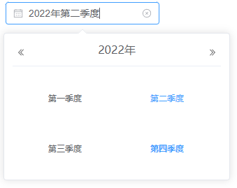 | placeholder | 可选,占位内容 | string | - | 请选择季度 |